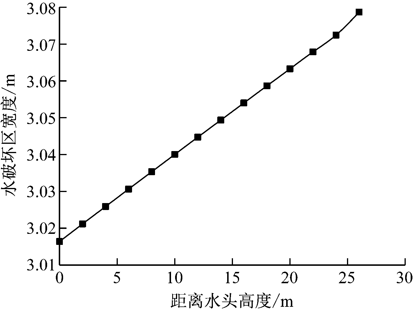 由图8可看出,随着距离水头高度的增加(水压增加),采空区侧煤柱塑性区宽度增大。