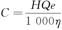 局部通风沿程损失根据获取的局部通风机风量Q、风压H、传动效率ηc、工作效率η,电价e,首末节风筒风量Q1,Q2,首末节风筒静压p1,p2,首末节风筒动压h1,h2进行分析。局部通风机有功功率为