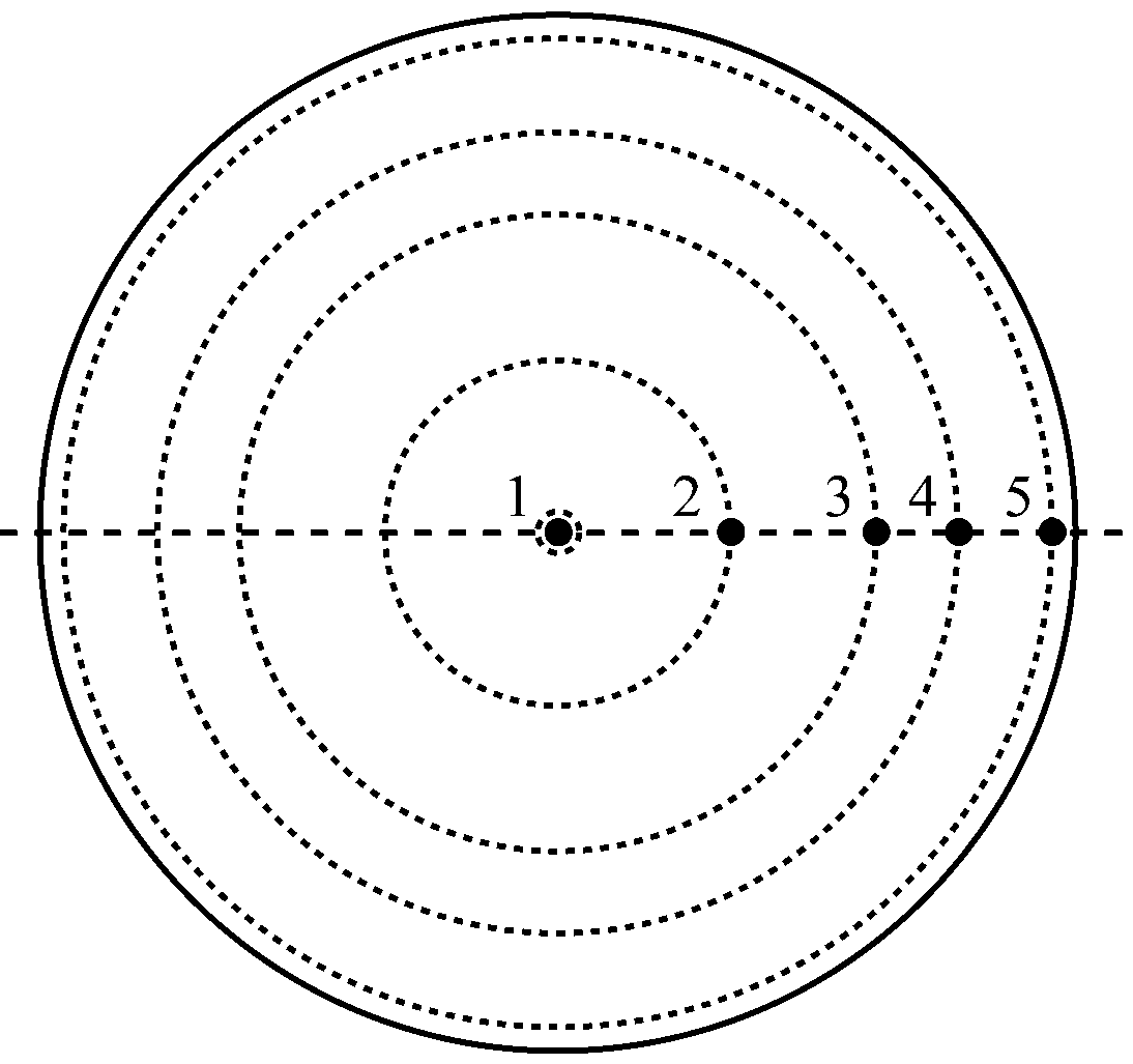 某煤矿203胶带运输巷掘进长度达5 000 m,配备2×55 kW局部通风机,在掘进初期制定了局部通风强化管理方案。前3 000 m采用某新型拉链式风筒来降低风阻及漏风量,按照图4在风筒上每隔200 m打孔,便于插入皮托管,同时配置封堵胶带。采用JFY-4通风多参数检测仪,同时测量风筒内动压、静压、风速、温度、湿度等参数,按照GB/T 15335—2019《风筒漏风率和风阻的测定方法》每天测量1次,取连续3次测量结果的平均值,计算风筒百米风阻和百米漏风率。采用皮托管测量风筒动压,按照管内流体平均风速圈理论,确定皮托管垂直逆向插入风筒的位置,为距离风筒壁面0.140 m处(风筒风流环点4位置),如图6所示。鉴于圆柱形特点,只限制皮托管垂直插入长度。