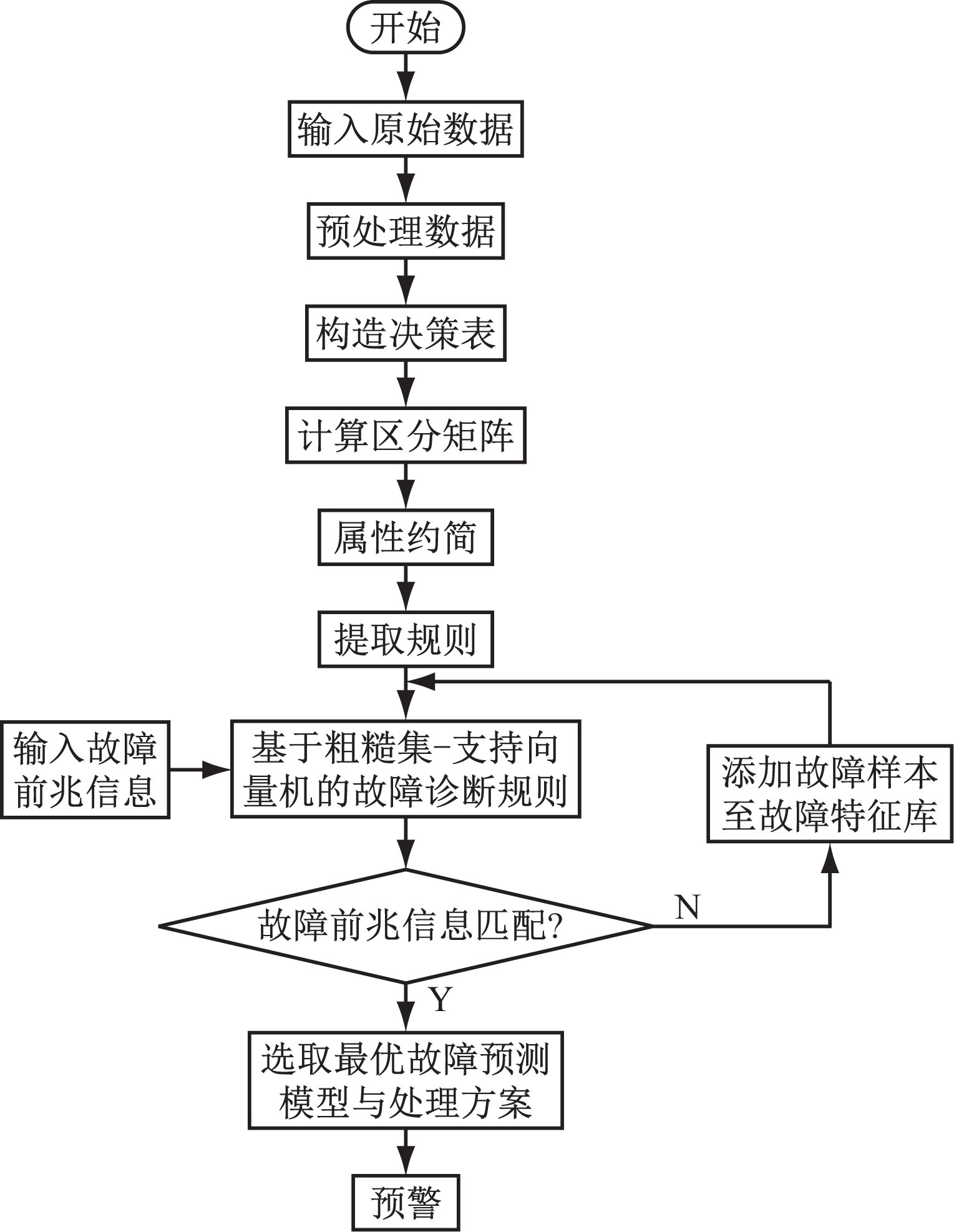 局部通风异常研判与预警分析包括局部通风故障决策支持、局部通风故障预警2个部分。局部通风故障决策支持依据日常监测的局部通风阻力参数,及时发现阻力异常位置和原因,快速诊断是否存在风筒供风段故障;依据日常监测的风筒段各测点静压,实时分析局部通风机风压降是否在合理范围;依据日常监测的局部通风机振动频率和供电系统参数,运用贝叶斯网络算法对局部通风机和各种传感器设备的健康状况进行诊断,确定最可能的故障原因,利用粗糙集理论的属性约简和遗传算法提取局部通风正常供风状态和故障状态的特征样本和前兆信息,建立局部通风故障特征库,利用支持向量机建立局部通风故障决策规则,建立局部通风故障决策模型,从而对局部通风故障进行提前预测。局部通风故障预警根据监测的故障前兆信息,及时与局部通风故障特征库进行对比分析,如果存在匹配的前兆信息,则利用遗传算法和粒子群优化算法对基于支持向量机的故障预测模型和处理方案进行快速选择,得出最佳方案,并通过声光报警器进行预警,提醒工作人员及时处理。当出现新的故障时,及时将故障样本添加至故障特征库,使其不断更新完善。