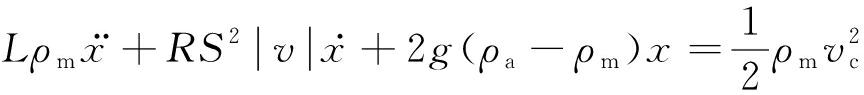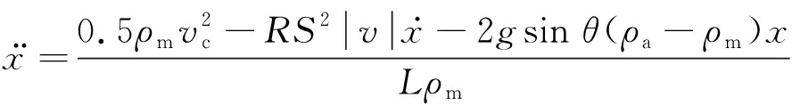分别为x的一阶和二阶导数;L为管道长度,m;R为回路风阻,取0.003 359 N·s2/m8;v为瓦斯气团速度,m/s;g为重力加速度,m/s2;ρa为空气密度,取1.225 kg/m3。