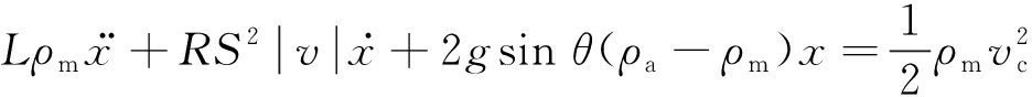 的方向为正,瓦斯气团受到的阻力方向为负方向。2gsin θ×(ρa-ρm)x为瓦斯气团受到的恢复力,方向为正。