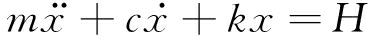 式中:m为瓦斯气体质量,kg;c为阻力系数;k为振荡回复力系数;x为瓦斯气团末端与平衡位置的距离,