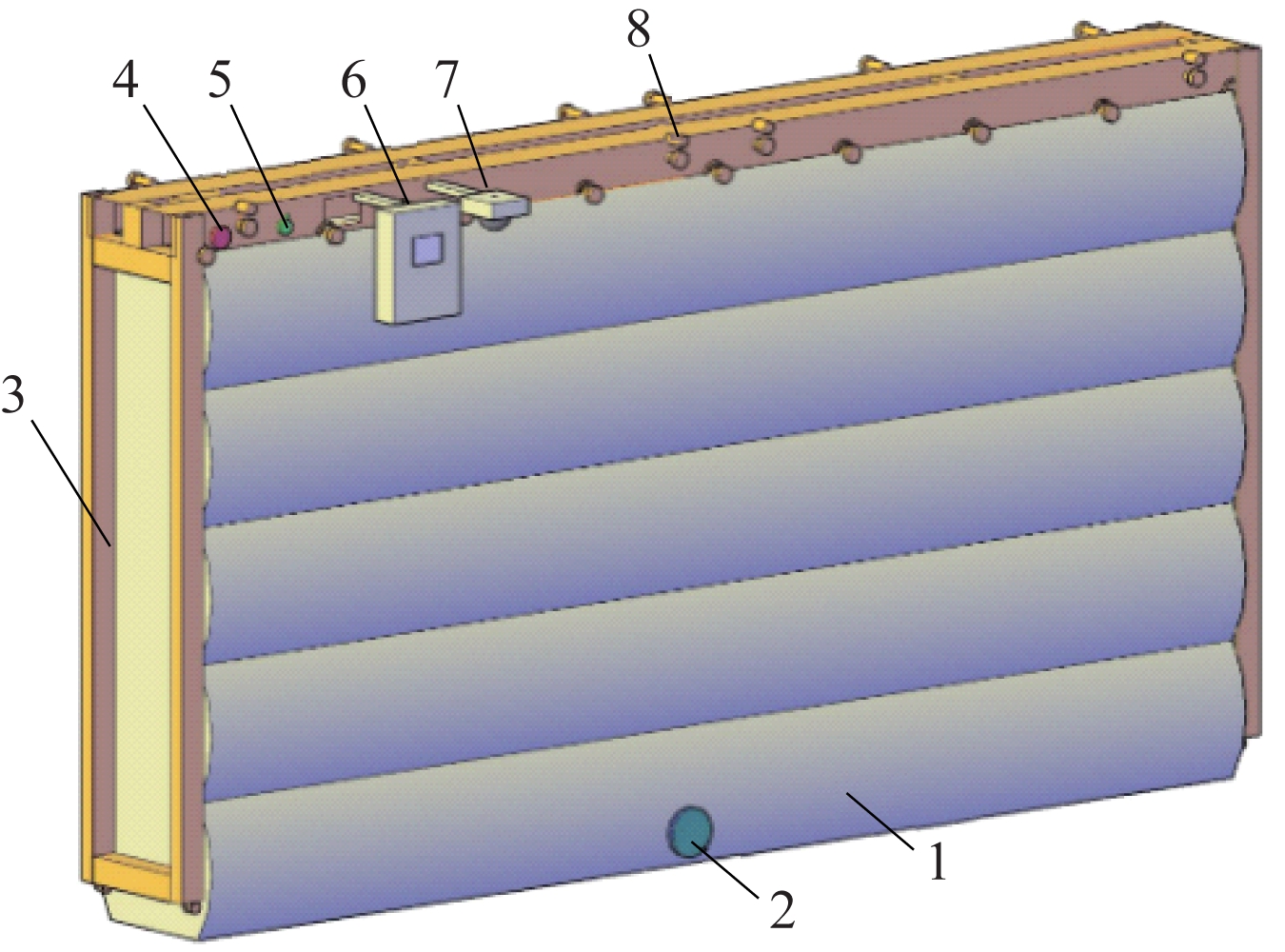 1-密闭囊袋;2-泄压口;3-导向轨;4-充填口;5-密闭压力监测;6-多参数传感器;7-摄像仪;8-启动结构。