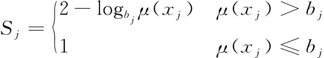 式中:bj为评价指标xj(j=1,2,…,m,m为评价指标数)调整水平,即xj隶属于最低评价等级(病态)时的隶属度阈值;μ(xj)为评价指标xj隶属于病态时的隶属度。