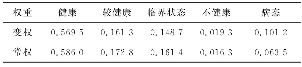 权重健康较健康临界状态不健康病态变权0.569 50.161 30.148 70.019 30.101 2常权0.586 00.172 80.161 40.016 30.063 5