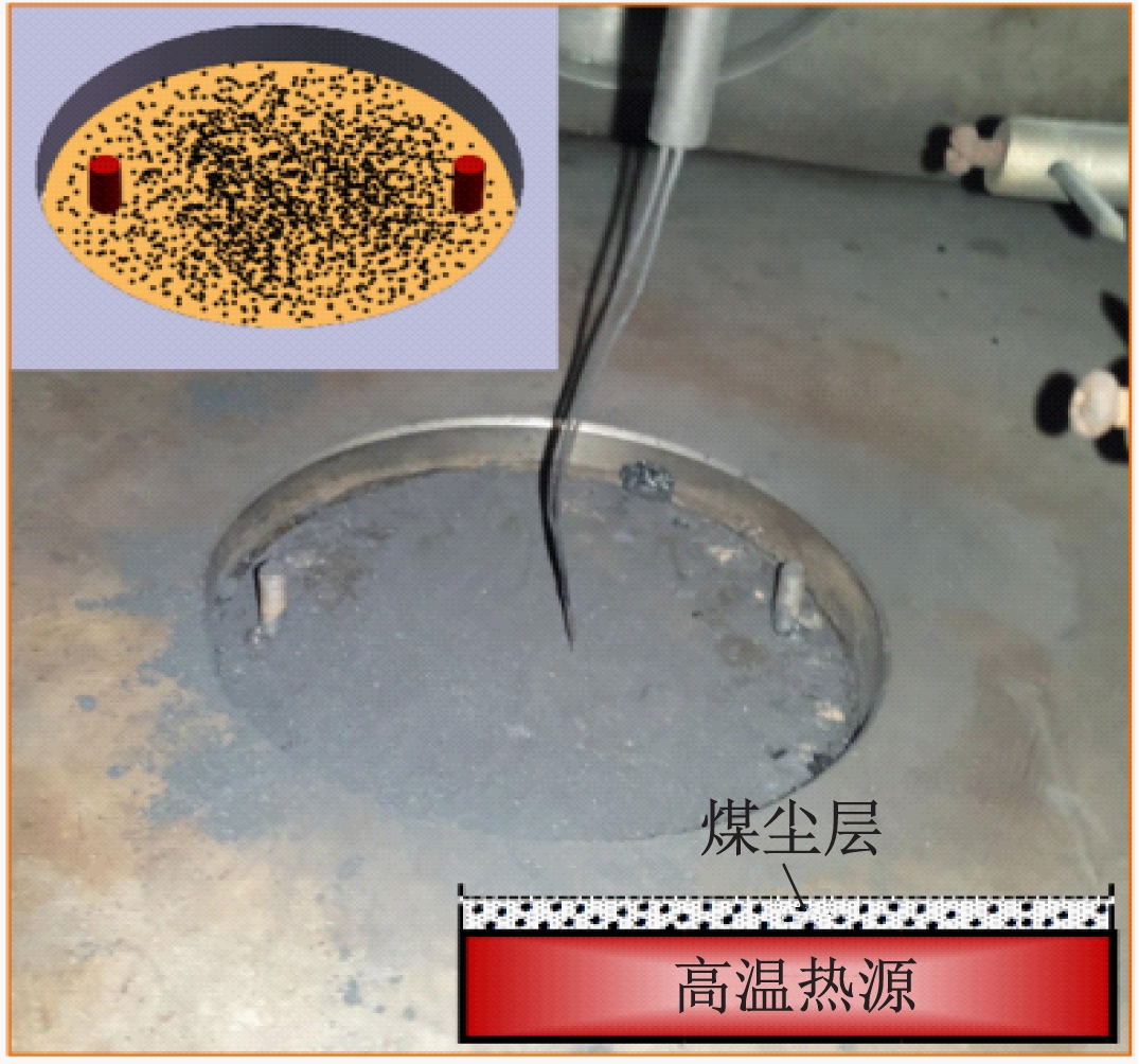 以往主要采用冲入煤尘、电火花点燃方式对煤尘爆炸进行研究。而采空区内煤自燃高温表面的煤尘以堆放的形式存在,与采空区内煤尘的存在形式不符,其结果很难反应采空区内煤自燃诱发瓦斯/煤尘爆炸过程。由于甲烷/煤尘冲入设备内发生爆炸前,铺设在高温热源表面的煤尘已发生热分解,其氧化分解出的可燃气体挥发分导致甲烷/空气爆炸关键特征参数升高。为深入开展煤自燃诱发瓦斯/煤尘爆炸研究,通过1 073 K高温热源测试铺设在其表面的煤尘点燃温度,以了解在甲烷/空气冲入设备前煤尘的热解状态。K. N. Palmer等[20]通过金属热表面对煤尘的点燃温度进行实验研究,发现随着煤尘厚度的增加,煤尘被高温表面点燃的温度降低。